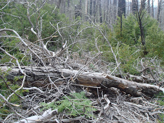 But In 2006 when Jill and I embarked on our first Kalmiopsis journey, I would be let down and frustrated, because the trails on that map were gone. They'd been smashed by the 2002 Biscuit Fire's aftermath. Dead trees filled the routes I'd planned, rendering them impassable, and we got lost.